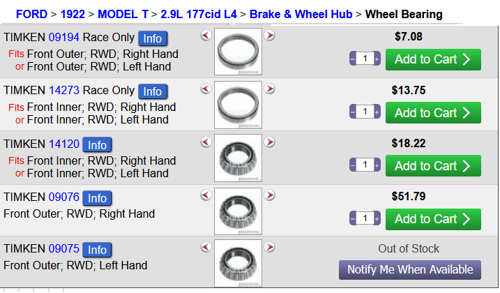 It's been so long since I've heard from Rock Auto, but if my lame brain is correct, I"m STILL waiting for the inside left bearing...or maybe it was the right side, or even both! Ha ha. Point is, they're mostly unobtanium for some stupid reason.Steve Jelf wrote: ↑Fri Nov 25, 2022 10:34 pmRock auto usually has the best prices on those, IF they're in stock.