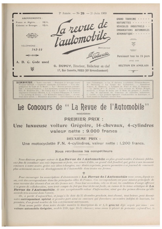 See back issues of early automobile/horseless carriage journals and magazines. Easily found on line.
