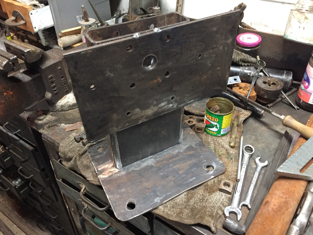 Anyway that is the backstory that led me to get a 8 x 8 that I cut down from a friend. Because it was not wide enough I needed to attach a plate here you can see it spot welded with holes to hold the magneto coil.