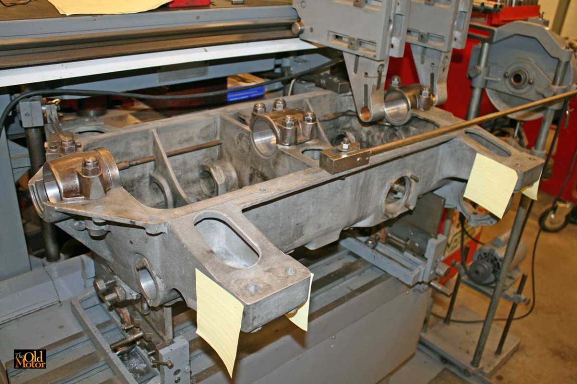 The 2nd photo shows the feed unit on the end of the boring bar set up on the bottom a supercharged 1930 SSK Mercedes block.