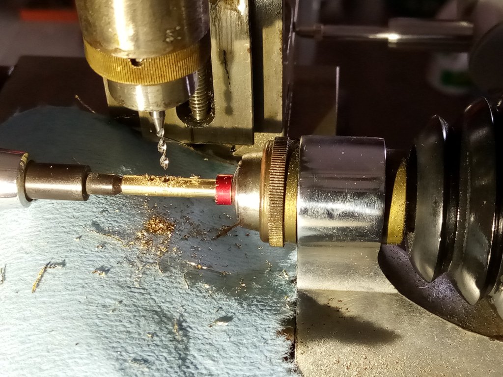 That last job had me sweating over possibly breaking the drill, so I made a custom finger-feed sensitive drill setup which works very well. Fit of arbor to socket is 100 millionths and is smooth as butter.