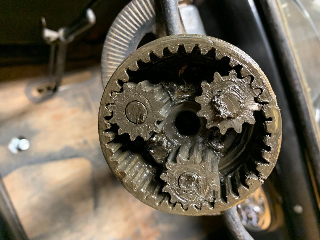 Since it's too cold to work in the garage and the car is in a really inconvenient spot in the garage, I'm stockpiling parts for warmer weather. I have new coils now! Anyway, when I bought this car, '26 Roadster, I've noticed that the steering wheel is....wiggly. I bought a stock steering wheel and braved the cold last week (sub zero) enough to see how it would look and disassemble the steering gears. I really can't tell much. There is some grease in there. A couple times when I was driving it if I turned the wheel while stopped I would hear a popping sound. Just a single pop. The car steers pretty good and isn't hard to handle. I see some new gears online. Would I just go with a new set of 'oversized' gears to make up the 'slop'?