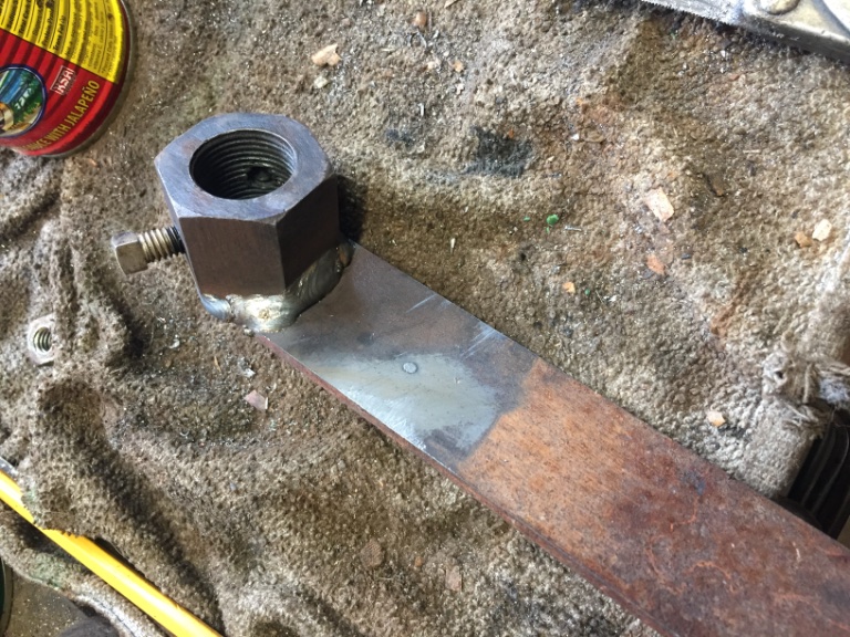 Anyway that is the backstory that led me to get a 8 x 8 that I cut down from a friend. Because it was not wide enough I needed to attach a plate here you can see it spot welded with holes to hold the magneto coil.