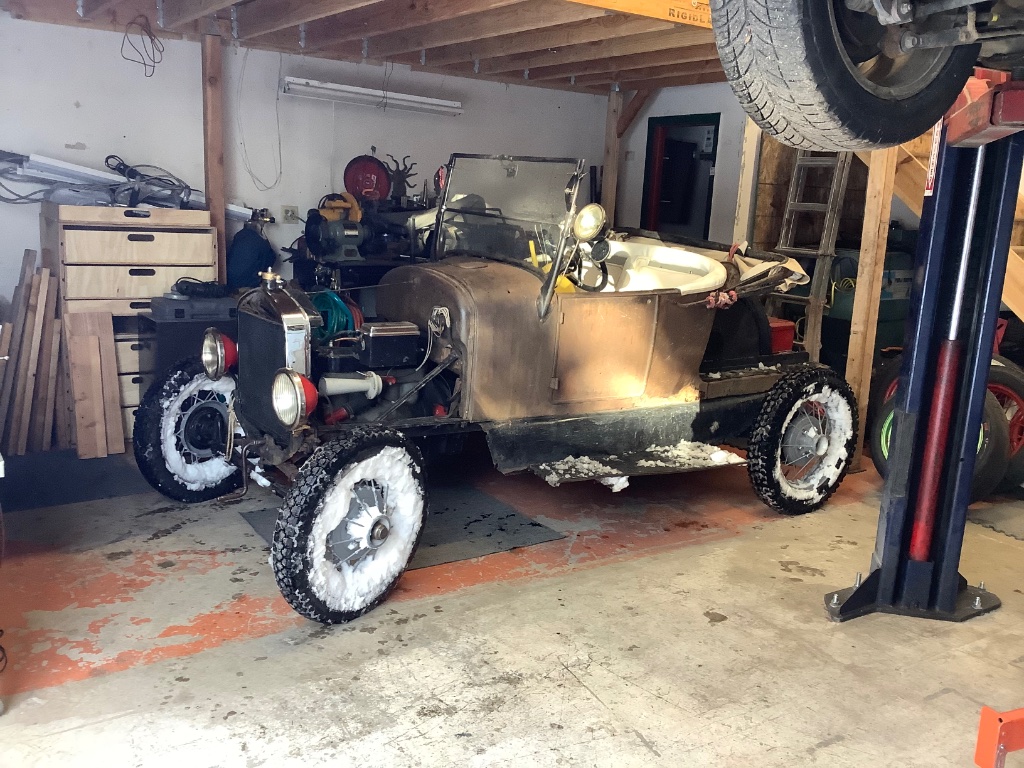 Moved my 1919 from the shop garage to the house garage so my son could put his modern iron in the shop for repairs.
