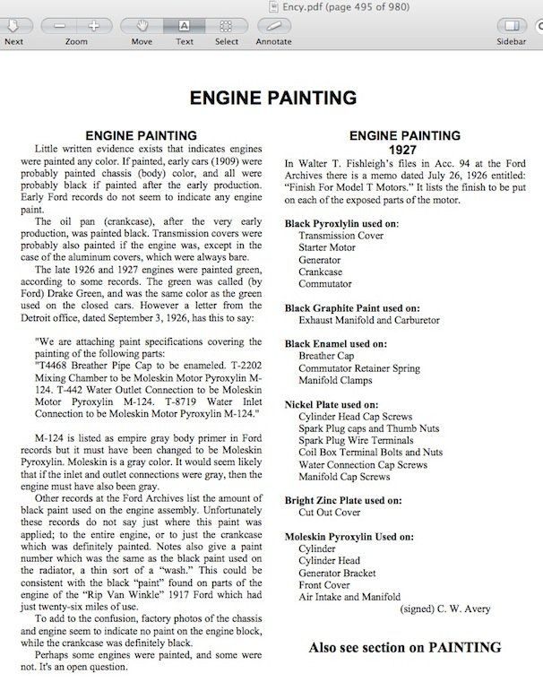 The valve cover on my '26 Fordor is black. Dad would have painted it the same color as it was originally, when purchased by my grandfather.