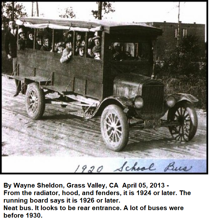 I have been asked if anyone can provide an approximate date for this school bus. The photo was probably taken in the Aberdeen, Idaho area