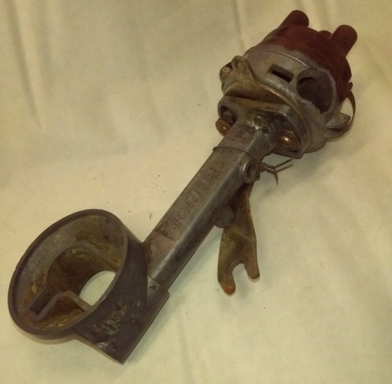 Tornado clip on distributor for parts- the potmetal is badly cracked and unuseable, but the cap and rotor are on good condition. There are no points in the distributor.