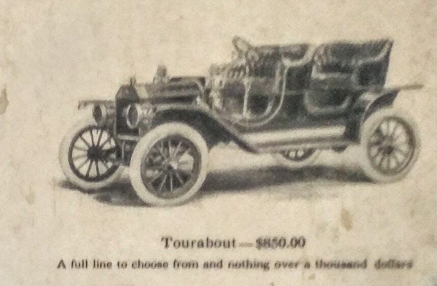 I appreciate the picture, Kerry. According to the model T Ford encyclopedia, the "Tourabout shown in Ford Times but not produced until July, and then called 1910 cars."