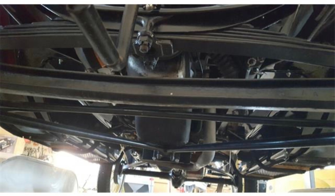 Images in the online posting appear to show the engine to be a nice fit and it's clearly not the original radiator. There are also pictures underneath but I don't know if the rear end is original or not but I seriously doubt it. There appear to drum brakes on the rear. The front axle looks to be stock. It's a solid axle with a leaf spring but I lack any expertise to know for sure. The steering system also looks stock which would make sense if the front axle is stock.