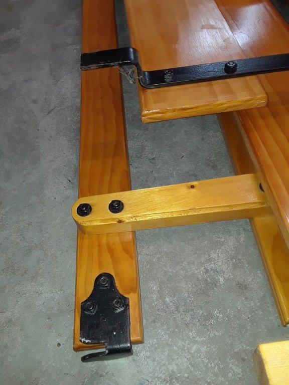 TT stake sides, six panels, complete with all brackets and hardware, varnished pine wood, $525