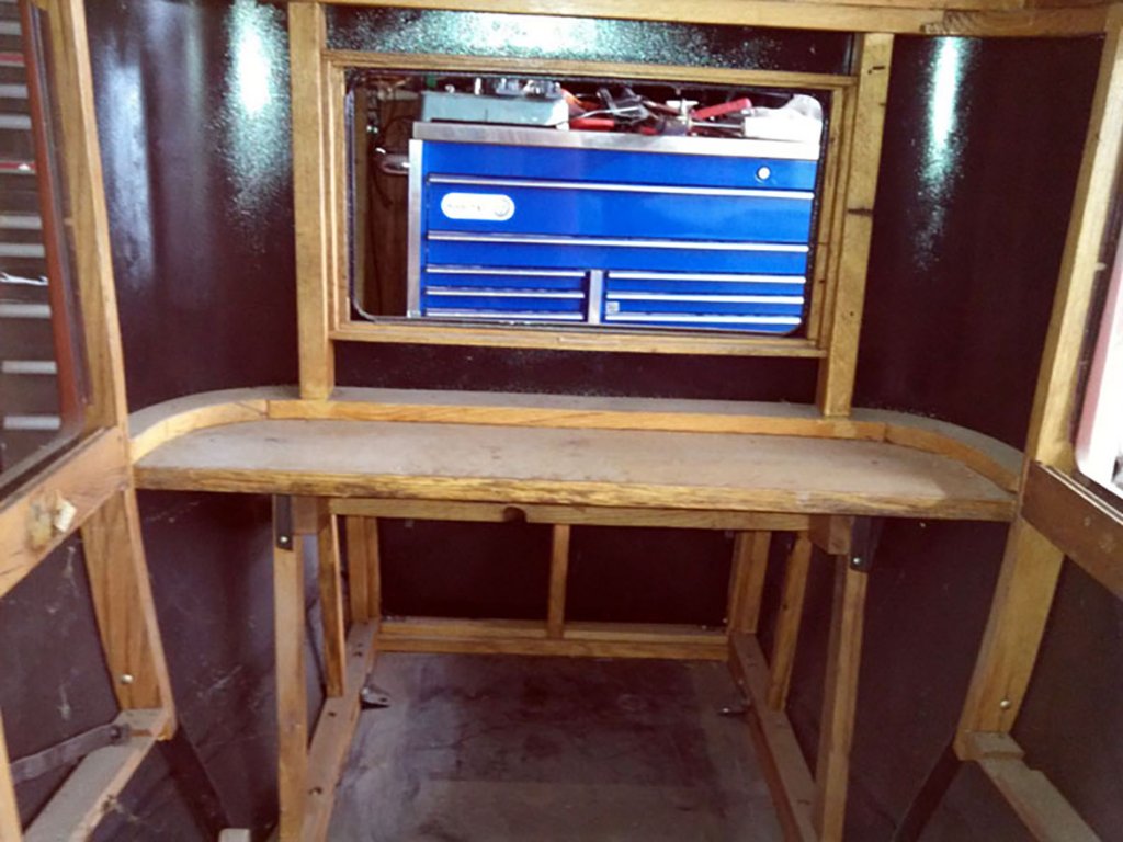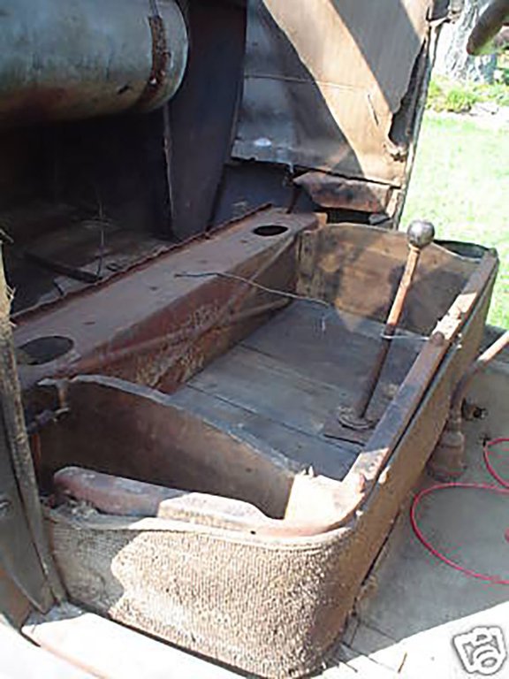 The photo that Rich shows of the front seat removed is someone’s long ago custom build that was added for the accessory transmission and it was filled in with wood to cover up the original open area.