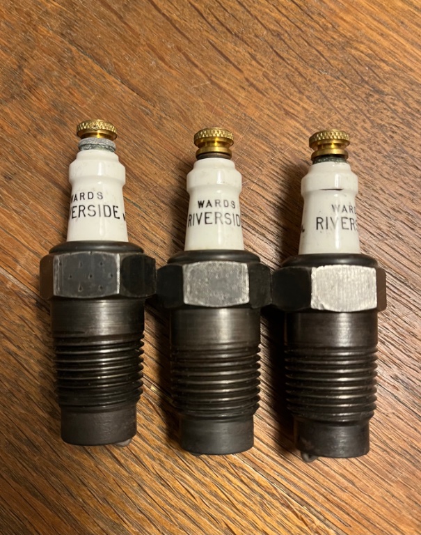 Here is a nice looking set of 3 Wards Riverside spark plugs.