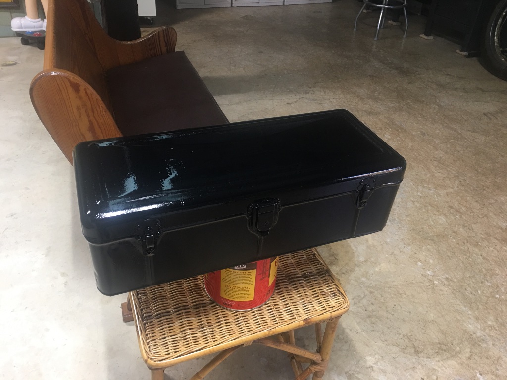 An extremely nice, dent free and rust free running board tool box. New single stage black paint. 21” long