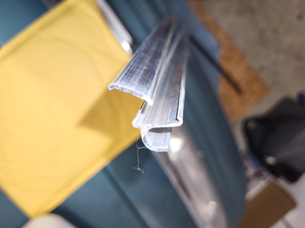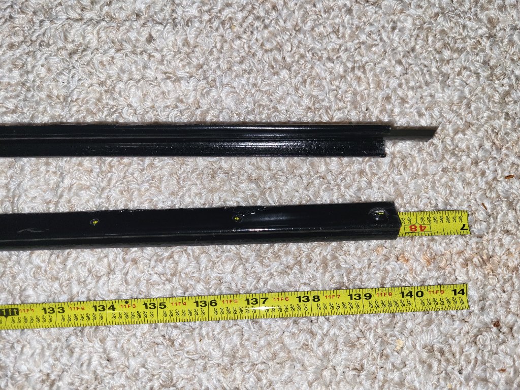 I wanted to reuse the original rain gutters from my coupe, but I have not been able to separate the two pieces. These are shown in the first three photos. I have purchased new aluminum gutters shown in the last two photos.