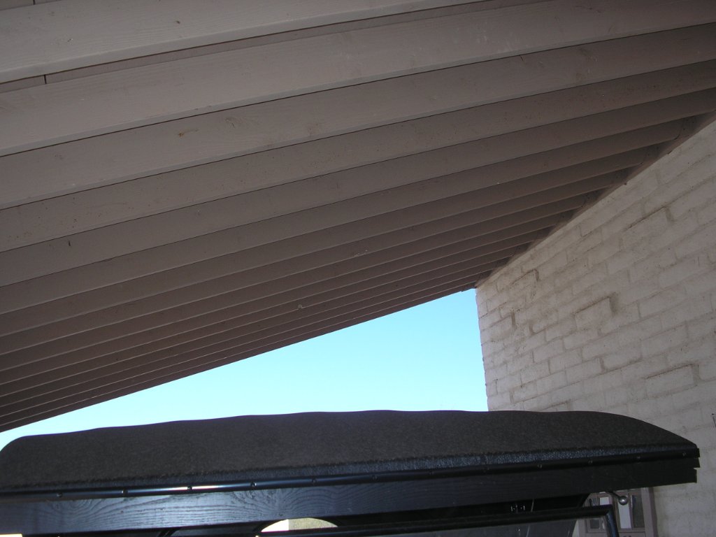 Donald, I missed the photo of the top you showed. It shows that there are just 7 slats in that roof. That means wide gaps, and that leads to the sagging between them. Close the gaps to approx 1" and the dips will go away.