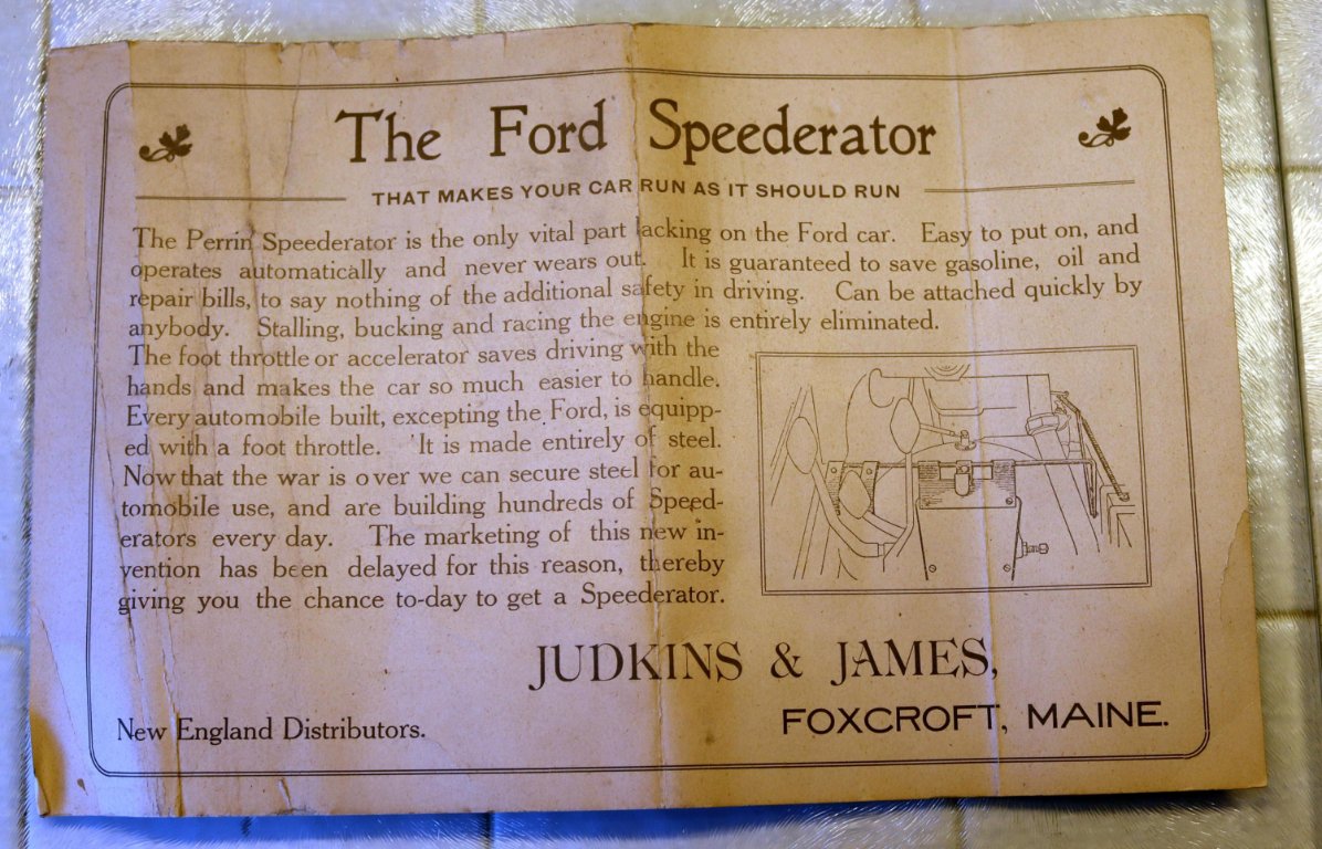 This is one of the nicest accessory gas pedal accessories I have ever come across in my many years of collecting Model T Accessories It's brand new in the original box with all the original paper work plus a extra dealer counter display poster. Having A accessory gas pedal is very helpful when your shifting a auxiliary transmission.
