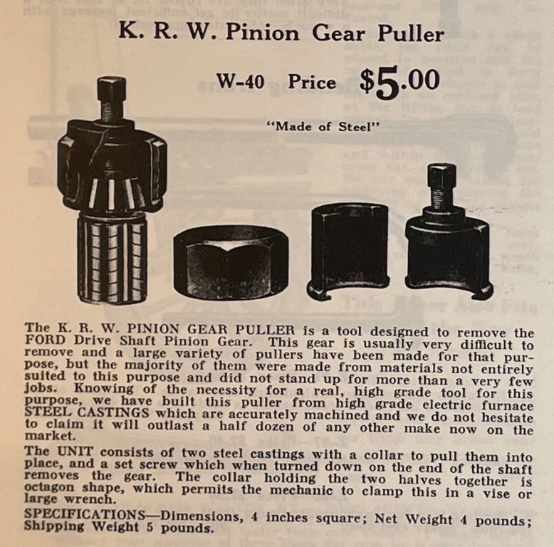 The KR Wilson Drive Shaft Pinion Gear Puller has been spoken for.