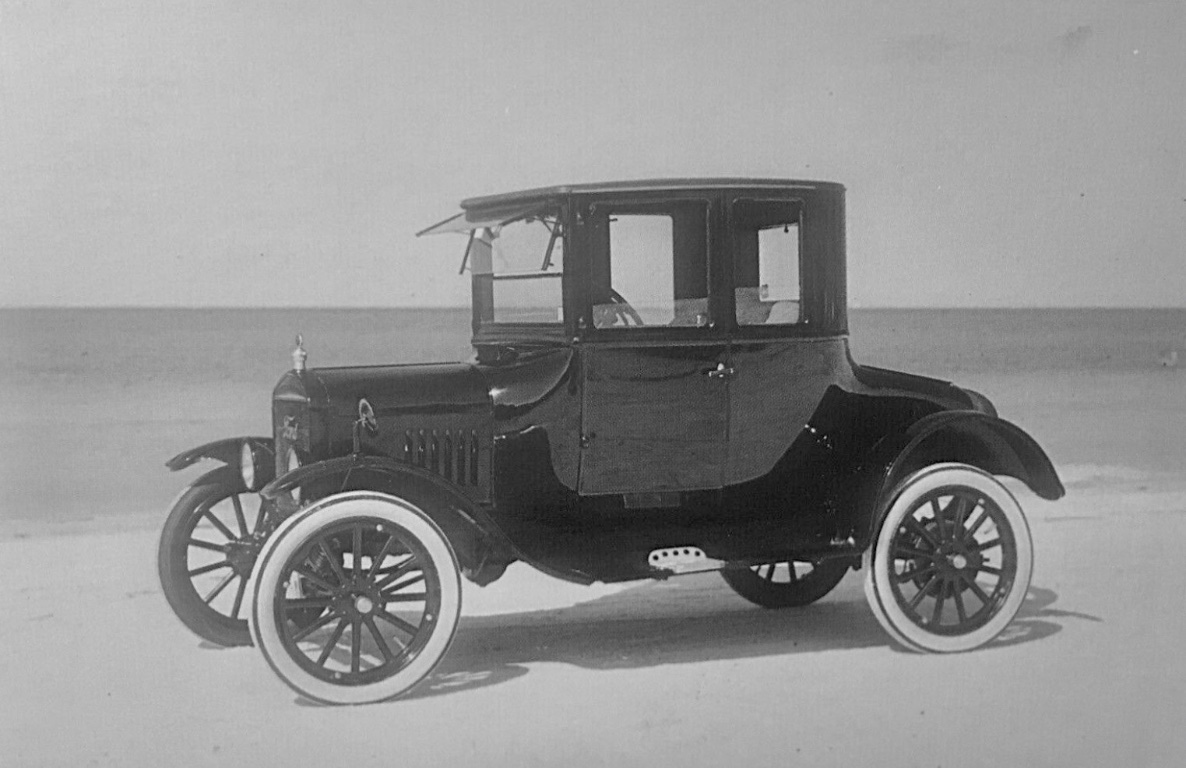 Between the radiator script, step plates, and fender mounted mirror, that coupe has three things rarely seen on Ts in the 1920s. The glass visor and the radiator cap were fairly common back in the day, and now. Those three rarities coupled with the tires means it almost has to be a modern photo.