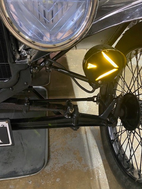 Thank you. Yes, please on the pictures. Any pictures are good pics. I want to avoid drilling through existing fenders or body parts. I am not sure it is feasible to avoid them all...but nice neat work!!!!Mark Nunn wrote: ↑Thu Feb 23, 2023 12:55 pmI bought a second taillight for my '26 Runabout. I cut off the part that holds a license plate and mounted it on the right fender. (Don't hold cutting up a T part against me. It was a rusted, welded piece of junk.) I bought a right-side mount and backing plate from one of the vendors. I also put 2-prong sockets (from Snyders) in my two taillights and now I have brake lights and turn signals. My front turn signals look like George's. I will find some photos and add them here.