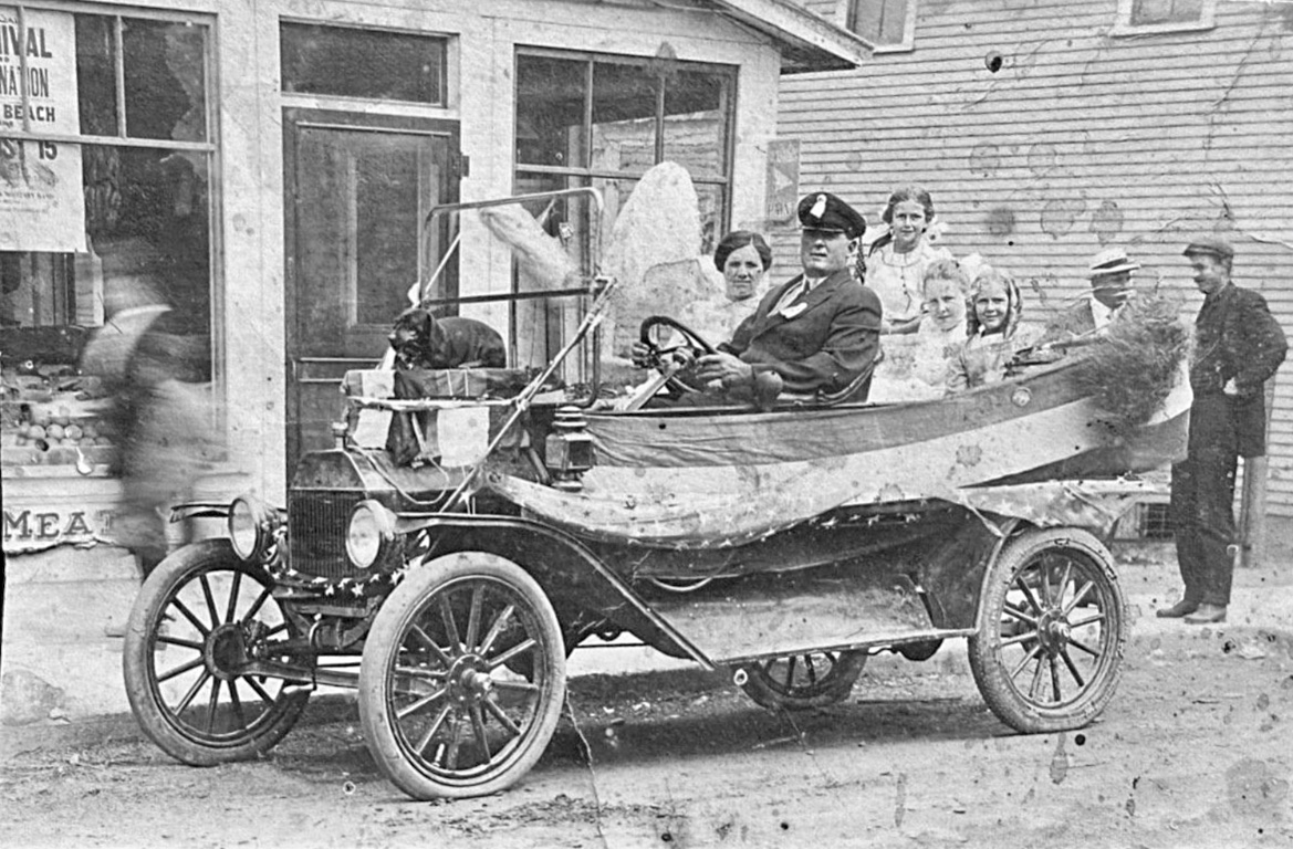 A really nice 1915 touring car (4th picture), with a nice front bumper. A couple other cars decorated for parades.