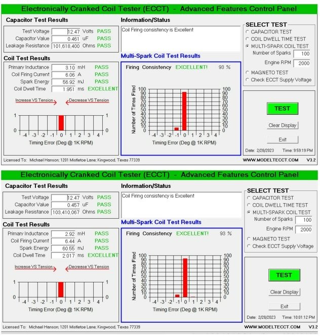ECCT results - All four coils read excellent firing consistency per ECCT ran tonight