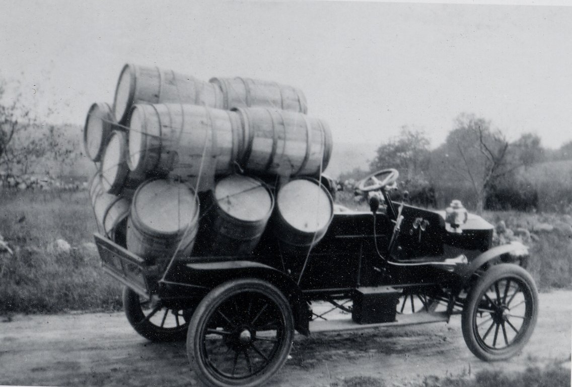 the milk float is a Cadillac, around 1909