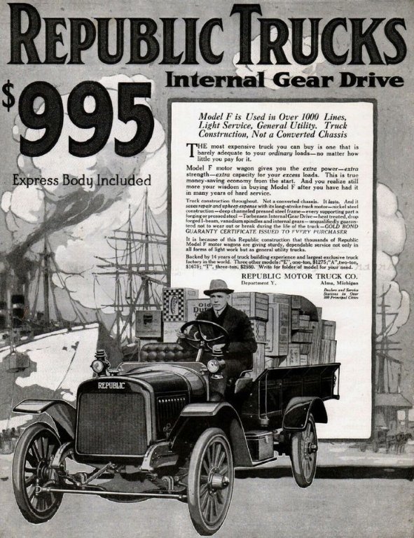 The U.S. produced so many trucks mobilizing for WW I the market was saturated with surplus units well into the 1920s. I always found it amusing that Packard and Pierce, the prominent luxury car makers were foremost among the builders of big trucks. Great photo !!