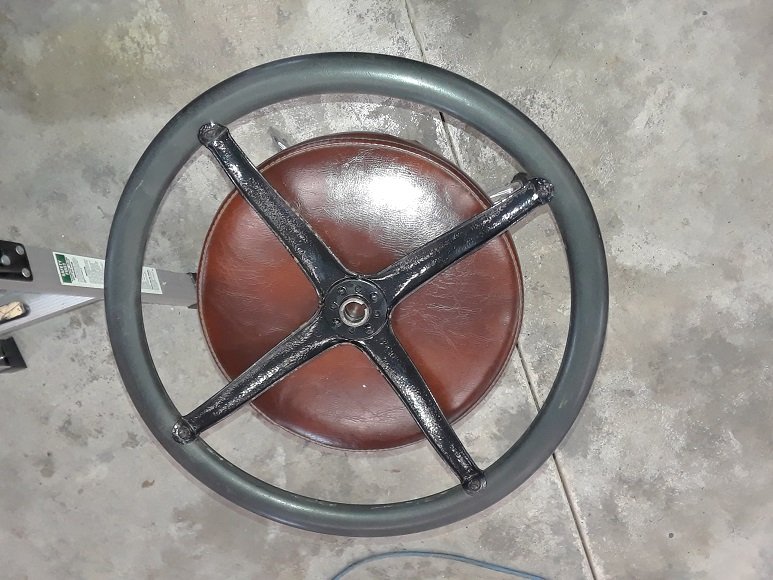 Steering wheel, 17 inches, stamped steel spider, very good rubber wheel, $50