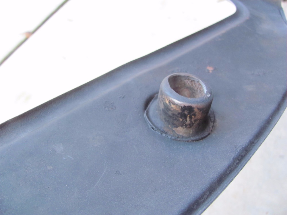 If these collars or spacers are missing, you have to find an original (red primer part) or fab up something that keeps the apron spaced from the frame.