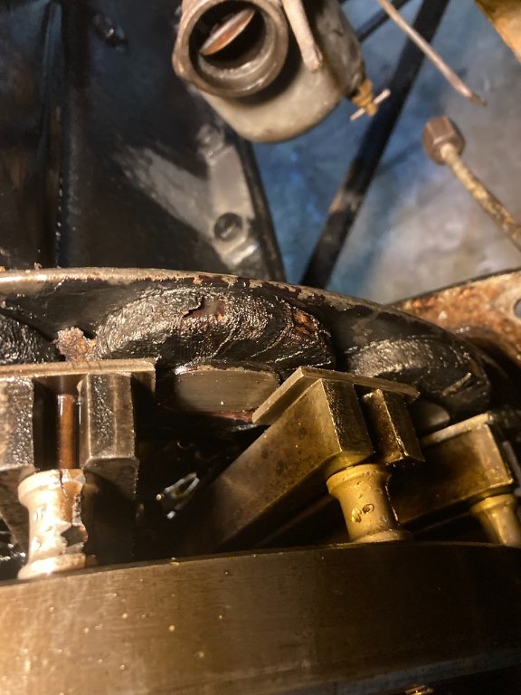 Now I'm in a quandry. The engine (1918 stamped) looks to be unrebuilt to my untrained eye. It has the old two piece valves, and for the most part runs OK, but does have some slight bottom end noise at higher RPMs (even with spark retarded a bit) and at about 35 he developes a bit of a shudder - gotta love those old cast pistons! To fix the mag requires pulling the engine, and if I'm going that far, I should do a rebuild - at least a top end job if not a full rebuild. But if I'm going 1/2 way I should go all the way right?