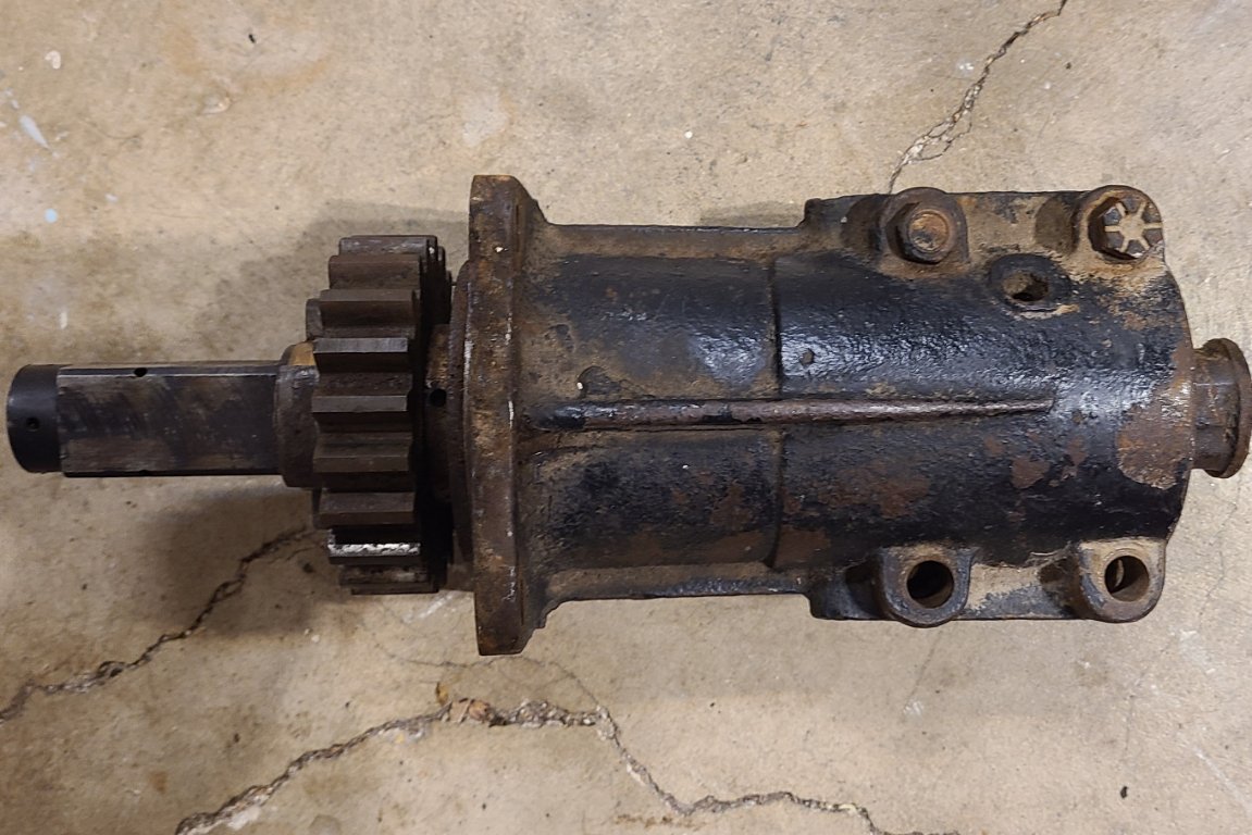 Matthew, I have taken apart several Moore transmissions over the years to get useable parts. Your Moore has been modified to use a T engine to drive some sort of home made farm equipment, giving two belt speeds and a neutral with out using the T pedals. On the TT equipped Moore, the part that you are having trouble with would have connected to the TT worm coupler, not a T U-joint, and the bracket is for the front Moore attachment to T car driveshaft, in other words a mismatch. Have you tried using a puller or a press to remove the gear and shaft from the housing and U-joint ? That gear looks like it may be modified to be like original front T Moore gear which is keyed to a modified T driveshaft, if so the T U-joint may be modified to two back half’s, with or without a U-joint pin, it is hard to tell from picture.