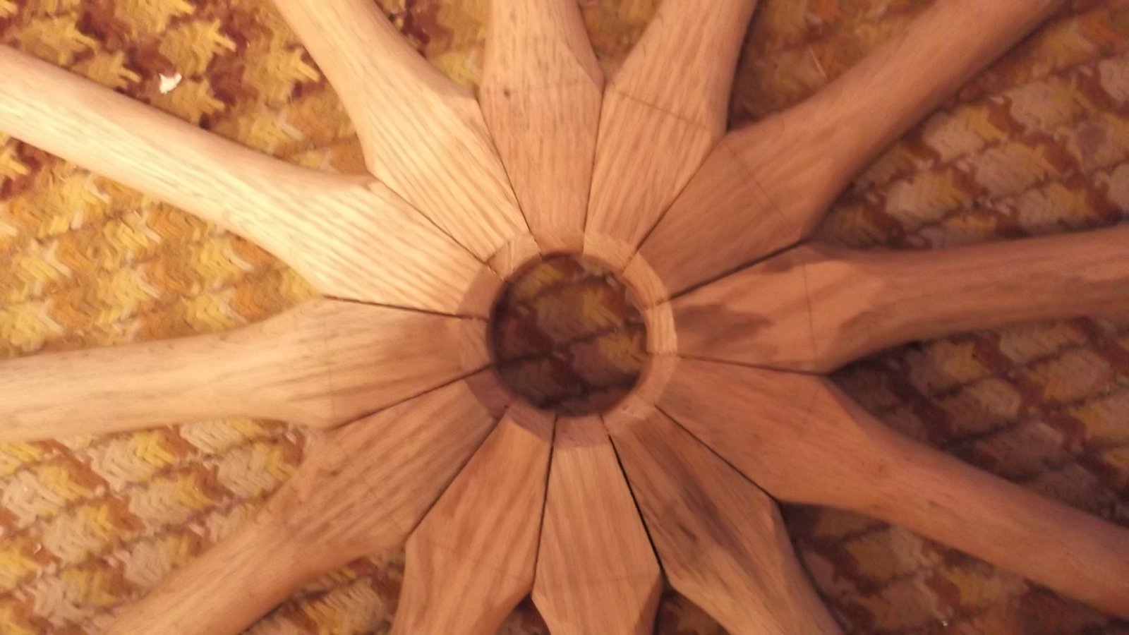 Trimmed the tenons to length and cut for radius on hub with back saw.