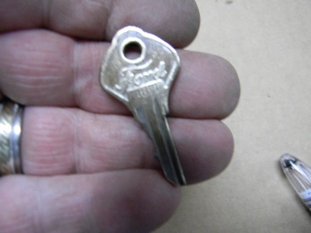 That is a 1928-30 Model A Ford key for the ignition. Only, it seems, are the early ones (1928?) marked with the Ford script. Of the ones I have in my Model; A Ford key collection, I have only several with the Ford name for this key.. I have a number of originals without the Ford name.