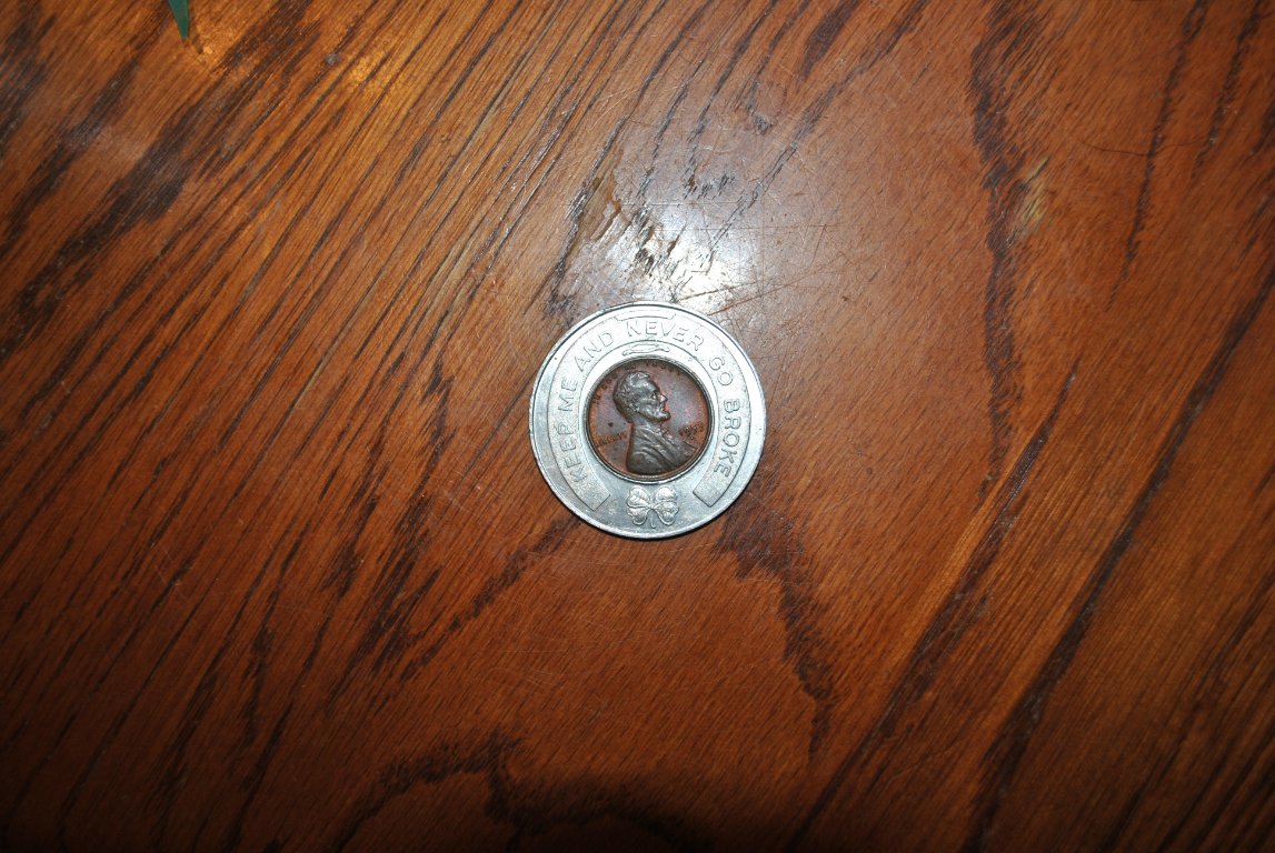 I have no idea where it came from but the wheat cent in the middle is as old as I am.