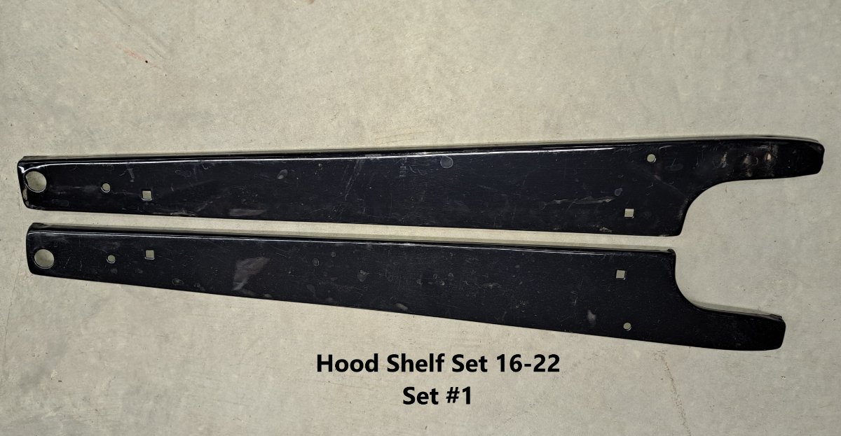I have two sets of hood shelves available for purchase. These currently are not available from the dealers. Prices and description are as indicated below. Actual domestic shipping will be an additional charge. Mark Chaffin (951) 805-0928