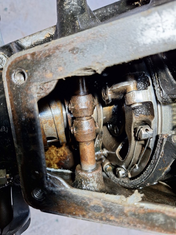 The whole thing looks to be a cock up, trying to marry up a 26/7 drive plate to an earlier drum will never run true, the outside diameter of the plate is smaller, the bolt up pattern is way off, it must have had the crap filed out of the holes to sort of fit.