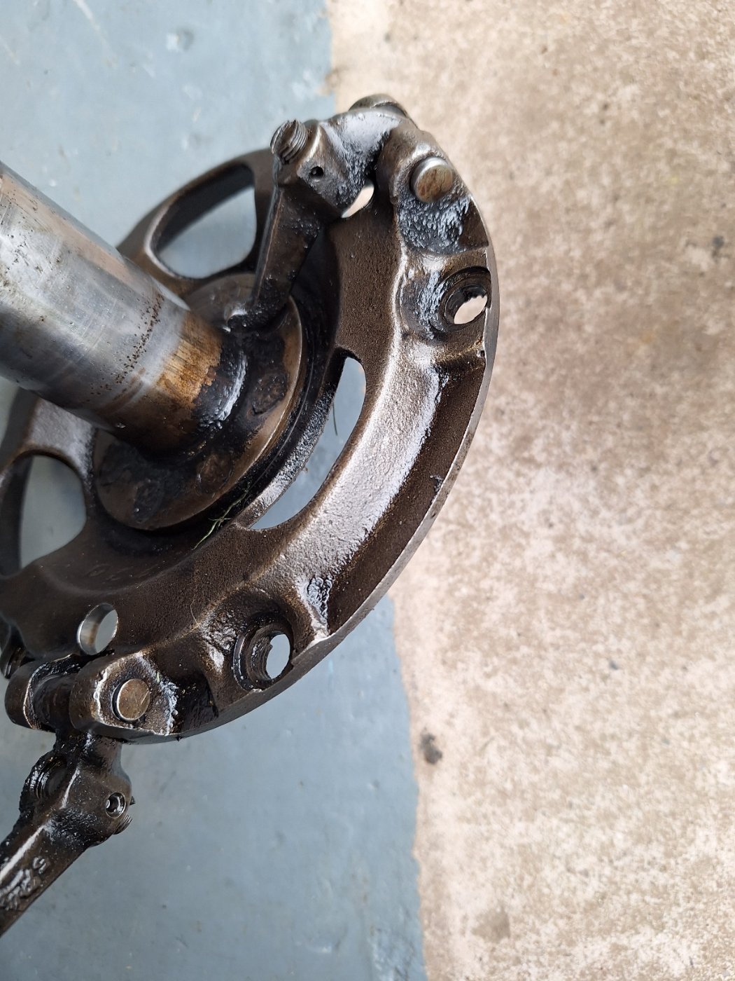 OK, now it can be seen what has been done, the drum is an 1925 narrow band and fitted shoes, a rare drum, if it was a wide drum turned down, the number on it would be T-709-B The T-709 is the narrow drum number, The drive plate is a wide drum one that has had the bolt holes over sized to try and marry it to the drum, remedy is to find a small drum drive plate.