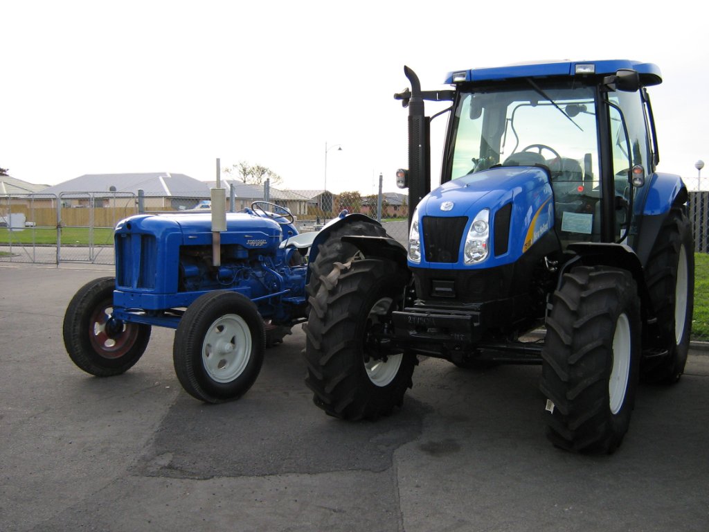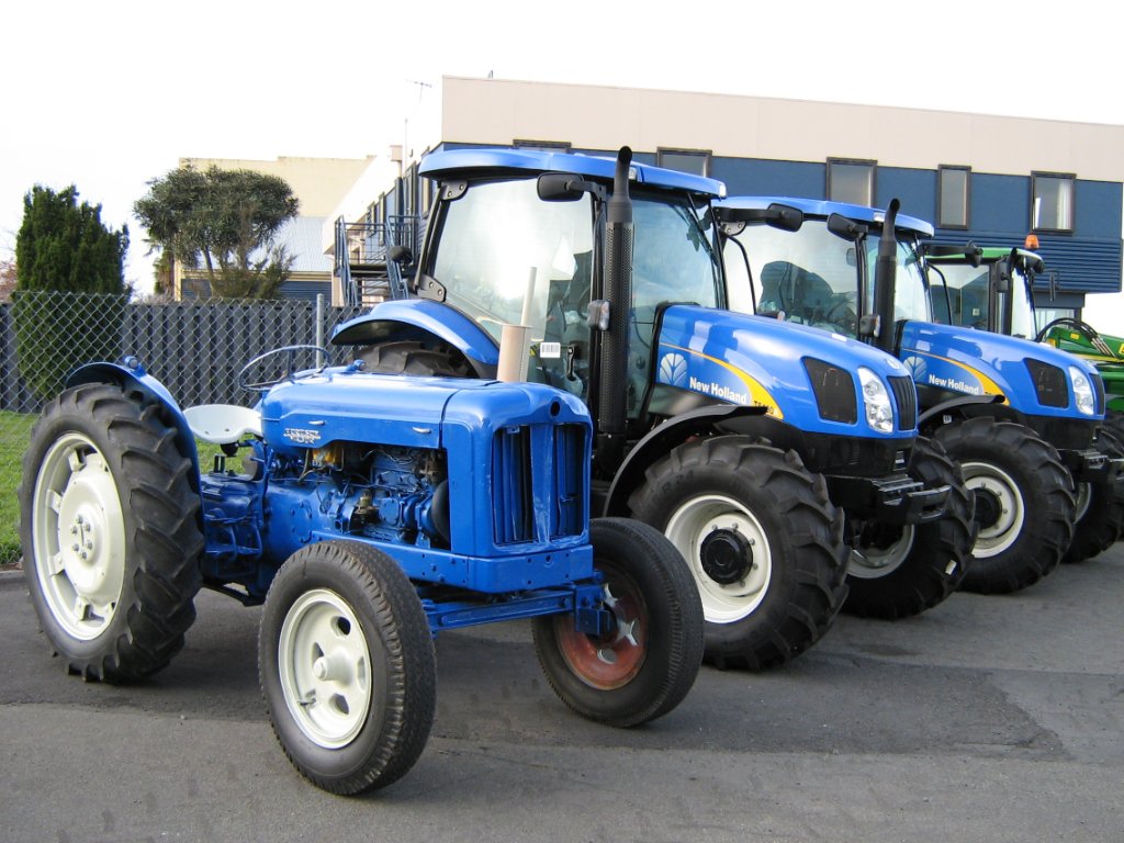 Obligatory photo of said Fordson at airfield where they happened to have some new (small!) Ford tractors parked: