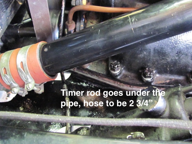 Note the lower of the two short hoses needs to be factory length of 2 3/4", some of the repros are cut a tad longer and will interfere with the rod.