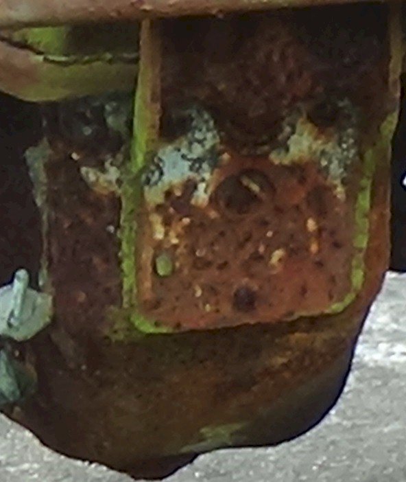 I have no opinion on the originality of the paint, but I do know this: having been flooded in salt water and then allowed to molder, I doubt that any of us knows exactly what a particular paint or paint color would do under those circumstances.