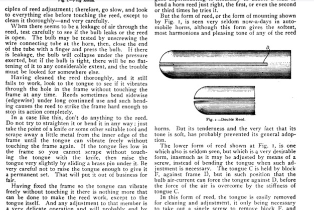 Here is some excerpts from a 1913 article in Automobile Repair journal. You can read enough to see only experience can lead you to a nice sounding bulb horn honk.