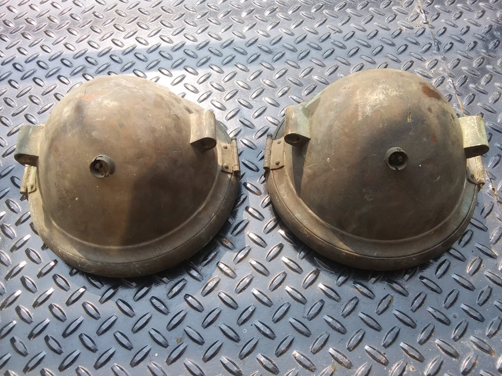 Here is a neat pair of accessory, all brass electric headlamps and a matching electric horn. These would be accessories for 1914 and earlier models that were originally had gas lamps.The lights are 9" in overall diameter and 6 1/2" in depth. The fork mounting is 6 3/4" hole to hole which can be used with 1914 and earlier forks. These would fit 1914 and earlier Model Ts and other brands with forks. These brass two headlamps and the brass horn are solid and in good, unrestored condition. The headlamps have shiny, original, reflectors, good lenses and sockets. Take a look at the photos, you get what you see.