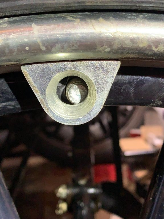 I have mailed Steve about the issue and have not heard back from him yet. But I think Dan "hit the nail right on the head"! The bolts do not all line up perfectly. I assumed it was mainly that the rim was not square to felloe when starting them on. Here is a picture of the lug hole next to the valve stem taken after the bolts were snugged up and the rim and then removed. The misalignment will get worse as the rim moves towards the felloe causing them to bind up.