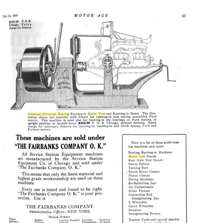There were two models. One like the one on the trailer at Chickasha where a belt drove the engine block you were burning in. And the other where you could put a whole running engine on to drive the second block you were burning in, as in the shop picture. I suppose if you left a complete running engine there, you could use it to run the line shaft in your shop too.