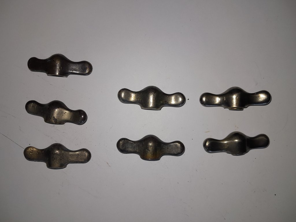 The OEM wing nuts were nickel plated brass, maybe the nickel has worn off yours. Caswell makes a home nickel plating kit that works well.