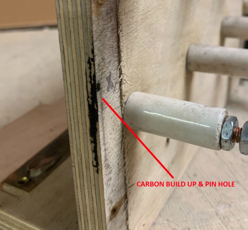 Thank you for posting your experiences and the photos! A lot of folks don't realize that the arcing can occur internally, between the layers of plywood.