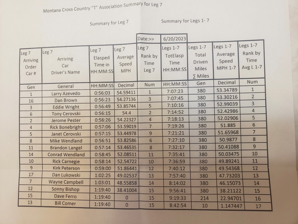 Attached are the Montana 500 results for day 2.