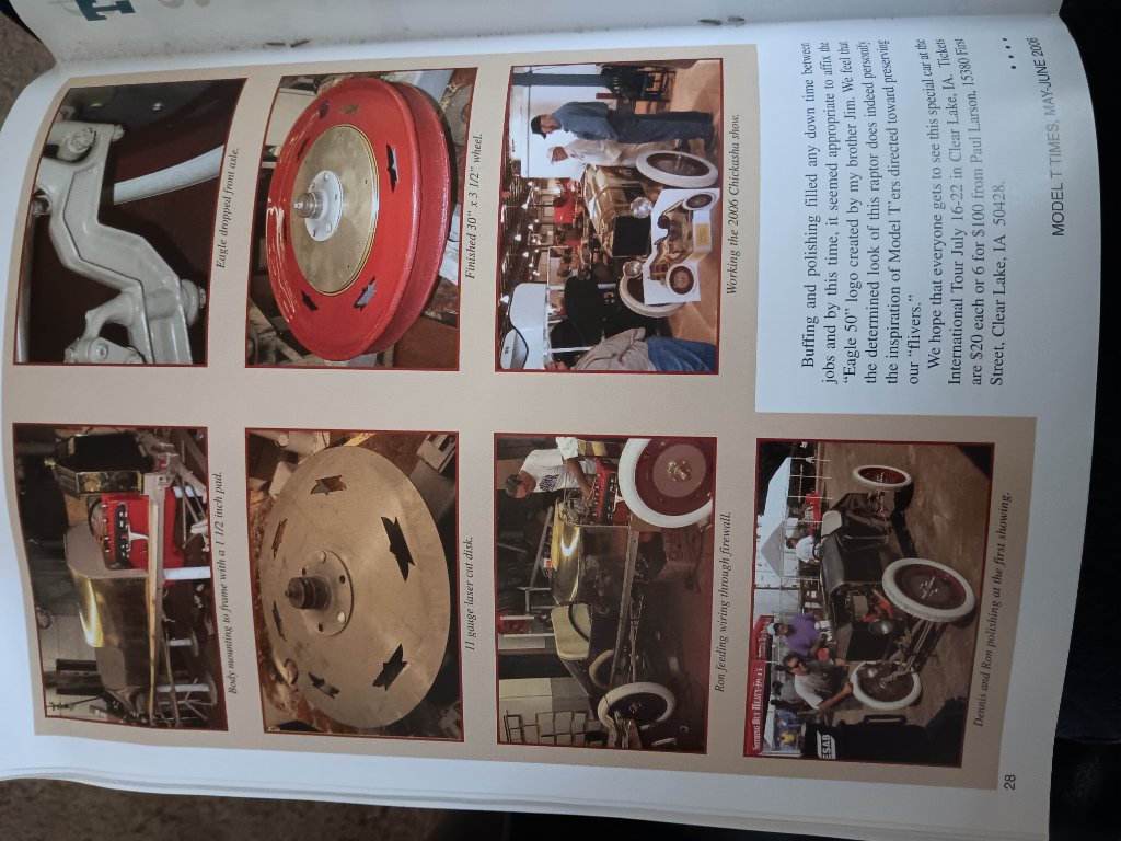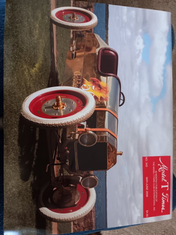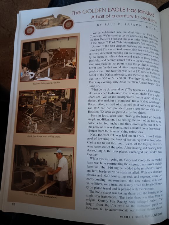 of the car and when I got back from our trip I found the MTFCI magazine that featured the Model T Golden Eagle. I hope the pictures work. They're from a phone.