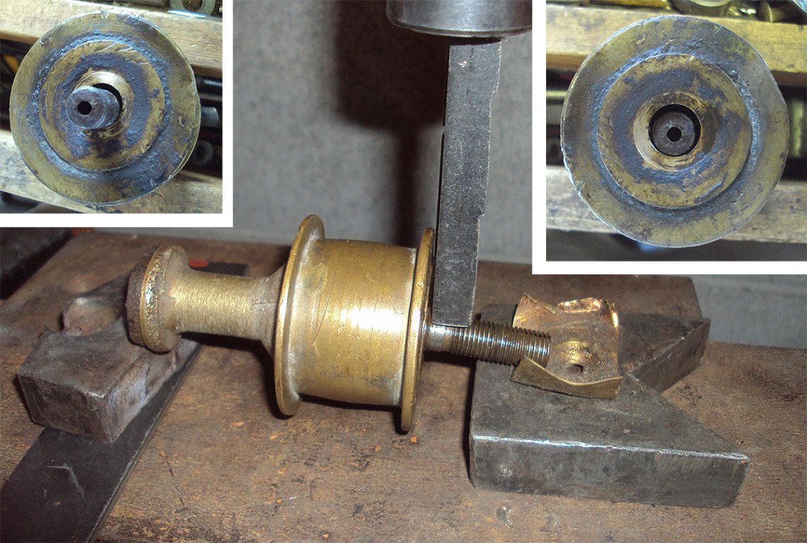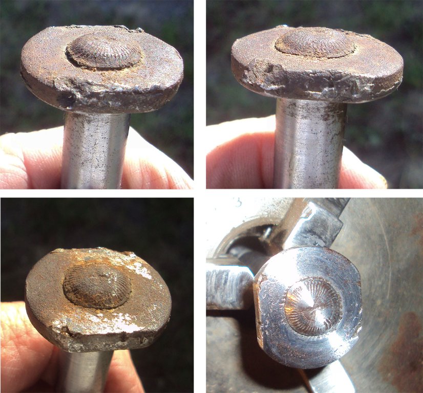 I blew out the outer muffler shell a few weeks ago on the Manhattan KS tour. So yesterday I began RE- forming it around a 5” x 1’ pipe. By using duck bill vicegrips I reestablished the straightened crimps and restored the original cylindrical outer shell. Then, with great difficulty, I reassembled the muffler with 3 shells and 3 ‘bolts’ to clamp the two cast ends together.