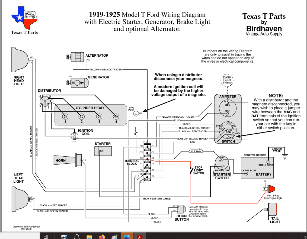 I just converted my Model A back to positive ground after changing it to negative ground many moons ago. Couldn't remember how I did it. Found this on the web then remembered that's how I did it the first time. Haven't tried it on a T.